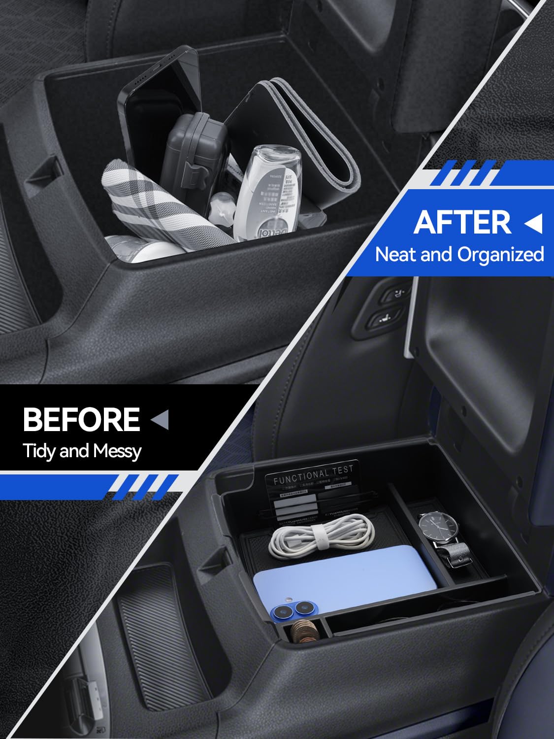 - Durability & Protection: Made from high-quality ABS Plastic & PVC, this middle console organizer is built for long-lasting use. It also provides non-slip protection, preventing items from shifting while driving.